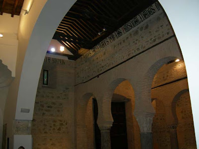 El espacio de su interior está articulado mediante dos arquerías paralelas que determinan tres pequeñas naves. Están compuestas cada una de ellas por cinco arcos de herradura construidos en ladrillo que se apoyan cuatro de ellos en capiteles soportados por otros tantos recios fustes; capiteles y fustes no tienen el mismo diámetro y son todos ellos diferentes lo que da a este templo un singular aspecto.
