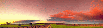 La magia y el amor que sentimos por esta tierra nos inunda cuando el atardecer pinta el ocaso de malvas y escarlatas, y todo el paisaje nos sumerge en sus contornos. Sutilmente, en ese ámbito de materia y latido de espíritu, las montañas lejanas, como diques azules, alzadas de nuestros suaves montes, nos llaman, y sentimos su voz imperceptible cuando el alma, sin trabas, nos eleva a sus cumbres.