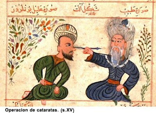 Algo más tarde, florecían en el Ándalus (España Islámica), el cordobés        Albucasis  (936-1013), que publica una enciclopedia médica, siendo sus textos  quirúrgicos  los más importantes de la cultura musulmana, sobresaliendo en su “al Tasrif” en materia de cirugía, por estar muy bien sistematizada todo su contenido y por la descripción anatómica que contrasta con la tendencia que se observa en la medicina arabe de relegar a un segundo  término, tanto la una  como la otra, sobresale por su interés por la cirugía, siendo su ocupación preferida la de dentista.