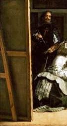 En la paleta que sujeta el pintor, aparecen todos los colores que utilizó para pintar el cuadro. Se trata de uno de esos aspectos que hacen de este pintor un artista barroco, no en el sentido, por ejemplo de Rubens-agitado y violento-sino en el de “juegos” con el espectador.