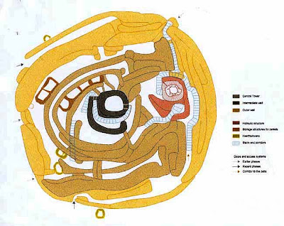 Torre central y los anillos concéntricos de la fortificación de la Motilla del Azuer.