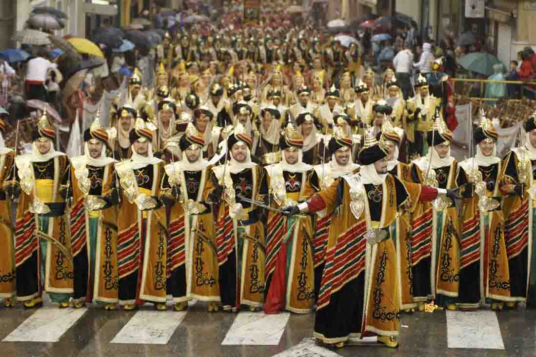 Todos los actos son muy interesantes, pero destacan por su seriedad y solemnidad las entradas, la procesión y las guerrillas, así como el pasacalles general para asistir a la misa con las autoridades y el clero, en el que van reunidos y formando una sola comparsa todos los capitanes, rodelas y abanderadas. Este acto, que se realiza en la plaza de Baix, resulta extraordinario por la riqueza de colores en todo su conjunto.