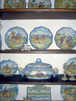 No hay duda, por otra parte, que Cervantes conocía la cerámica de nuestra ciudad. Es cosa probada. En uno de sus entremeses, el titulado La guarda cuidadosa, el soldado, refiriéndose a la fregona Cristina, exclama: (¡Oh platera, la más limpia que tiene, tuvo o tendrá el calendario de las fregonas!)Por qué, así como limpiabas esa loza talaveril que traes entre las manos, y la vuelves en bruñida y tersa plata, no limpias esa alma de pensamientos bajos...?@No podía ser menos, en el caso de Cervantes, al tratarse de un hombre de la época de Felipe II y Felipe III, los reyes que con más decisión admiraron y protegieron la cerámica talaverana, recomendando el uso de nuestras vajillas frente a las de oro y plata, por ser igualmente bellas y mucho menos caras y ostentosas... La sobriedad cervantina, su sentido de la mesura y discreción sin duda llevarían al célebre escritor, y malogrado soldado, a defender esta misma opinión.