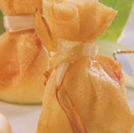 La masa brick se presenta en forma de discos y una de las maneras en las que puede usarse es haciendo limosneras. Un modo elegante de presentar unas verduras a la parrilla es trocearlas, pasarlas por la plancha y rellenar una hoja de masa brick dándole forma de bolsa y atándola con una hoja de cebollino. Después se lleva al horno hasta que la limosnera se dore.
