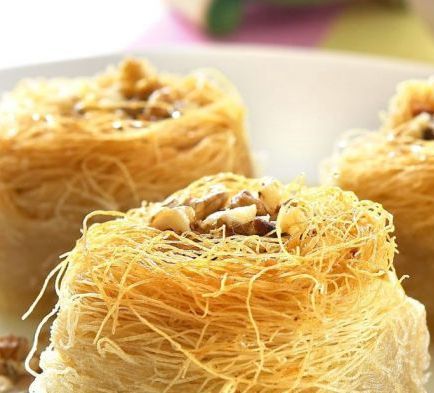 También con el Kadaifi podemos hacer unos dulces formando un nido con la masa y rellenándola con frutos secos troceados. Posteriormente, los rociaremos con miel o con sirope de arce y los llevaremos al horno para dorarlos.