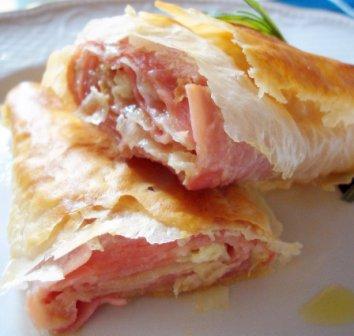 Otra de las masas utilizadas en cocina es la conocida como Filo, que viene a ser fina como una hoja de papel. Para sorprender a nuestros invitados, será suficiente con hacer un picadillo de jamón y queso, o cualquier otro relleno y reservarlo. Aparte, sobre la mesa colocaremos una hoja de masa filo y la pintaremos con huevo batido, colocando a continuación una hoja de masa encima y repetiremos la operación hasta tener cinco o seis capas. Rellenaremos la masa con el picadillo, haremos un rollo y lo llevaremos al horno para que se dore, justo antes de servir.